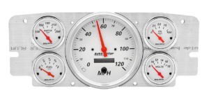 1957-1960 Ford Truck Aluminum Gauge Adapter Panel w/ AutoMeter Old Tyme White Gauges