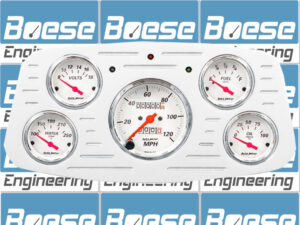 Includes aluminum dash insert, Auto Meter Ford Masterpiece Silver gauges & turn signal/high beam indicators.