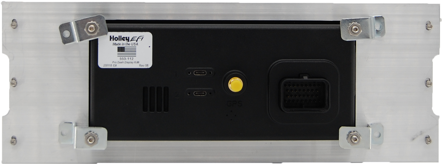 Holley’s new 6.86″ Pro Dash delivers over 200 monitoring channels of reliable real-time data in a more compact, full HD package suitable for nearly any motorsports application. Be assured that the Holley EFI 6.86″ Pro Dash will deliver the vitals you need! The 6.86″ Pro Dash is completely customizable for use in a variety of motorsports applications. It features a 6.86″ 1280×480 resolution low glare, high brightness, high contrast, full-color capacitive touch screen for easy viewing even in the sun, plug and play connection to all Holley EFI systems as well as a weatherproof aluminum housing featuring flexible mounting options. Monitor the power of your Holley EFI system at a glance! Holley EFI 6.86″ Pro Dash includes everything needed for installation! The Holley EFI 6.86″ Pro Dash also features a plethora of inputs and outputs for expanded functionality of your Holley EFI installation. The included 34pin connector has 13 multi-configurable inputs for most Holley EFI sensors, such as pressure and temperature. Not using Holley EFI sensors? We still have you covered, these inputs are configurable, allowing you to utilize different sensor scaling calibrations! The Pro Dash also features two dedicated speed inputs, for RPM, Driveshaft speed, or any other Hall effect speed input. Need more outputs? The Pro Dash contains 4 ground switched outputs, that can be utilized with the switch panel feature to quickly turn on any of your auxiliary accessories, such as a master nitrous switch, or an electric water pump. We have also integrated a 10-LED Programmable shift light into the bezel of the dash and added 4 optional LED’s that can be programmed for virtually anything, such as fuel pressure or oil pressure warning indicators, or a target boost indicator, the options are almost endless.