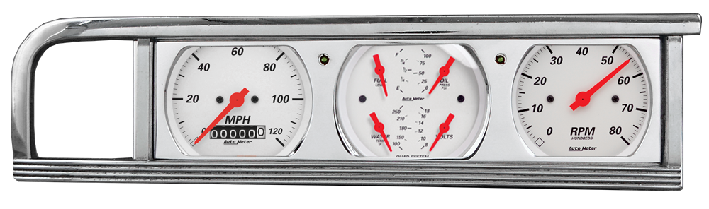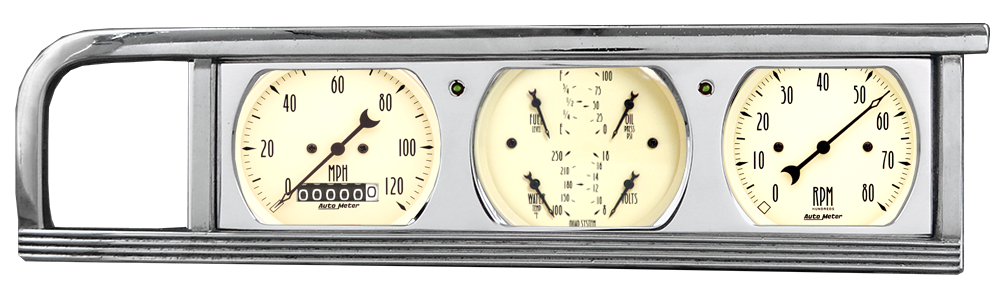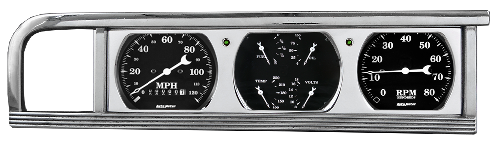 Includes aluminum adapter panel, Auto Street Rod series gauges & turn signal lights.