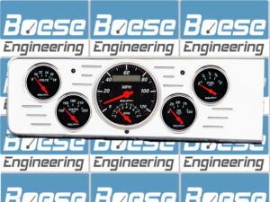 Includes aluminum adapter rings & Auto Meter Street Rod series gauges.