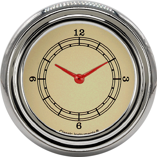 Includes aluminum clock insert & Classic Instruments 2 5/8″ quartz clock.