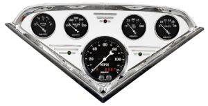 Includes brushed and black anodized aluminum dash insert, Auto Street Rod series gauges & turn signal/high beam indicators.