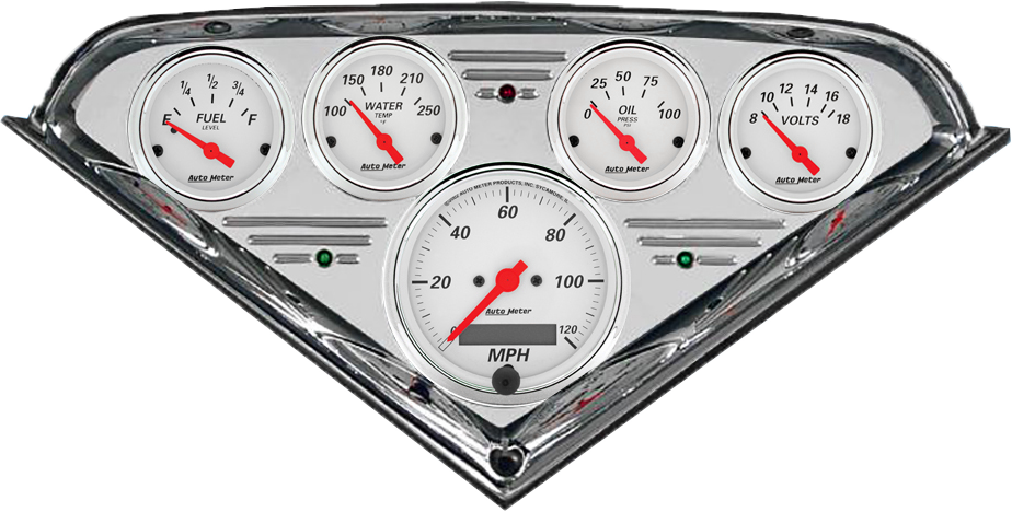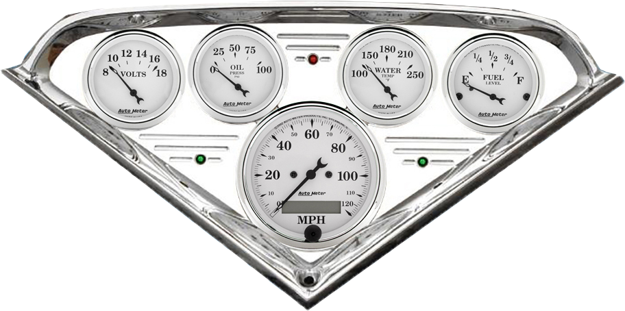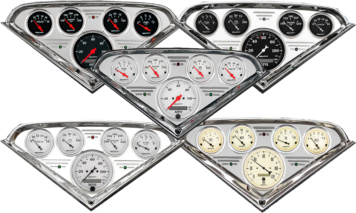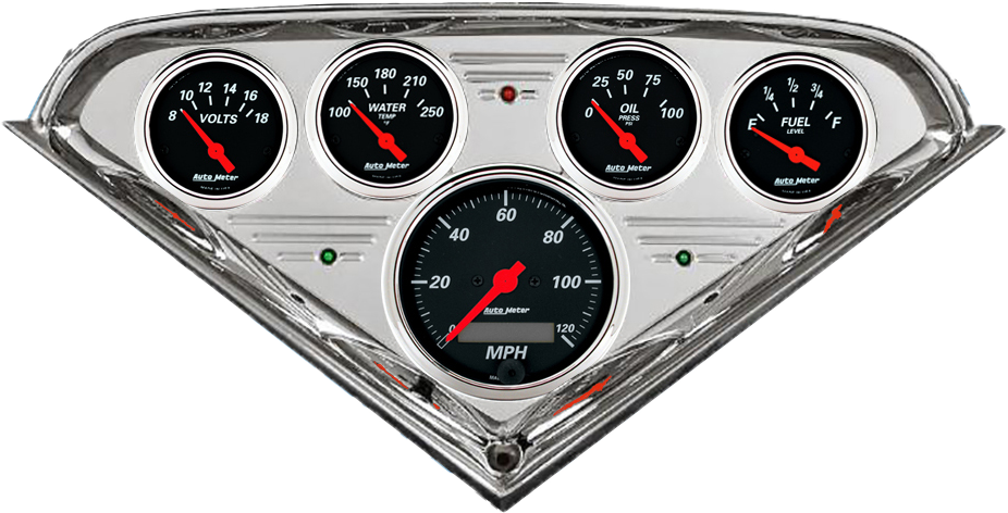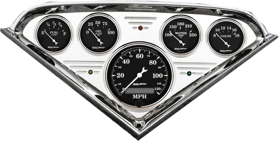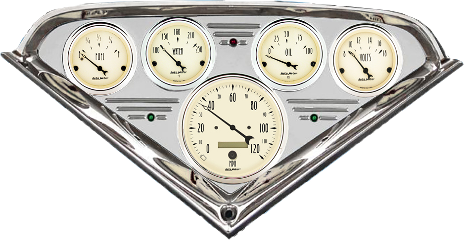 Includes aluminum dash insert, Auto Street Rod series gauges & turn signal/high beam indicators.