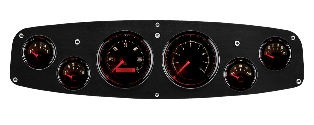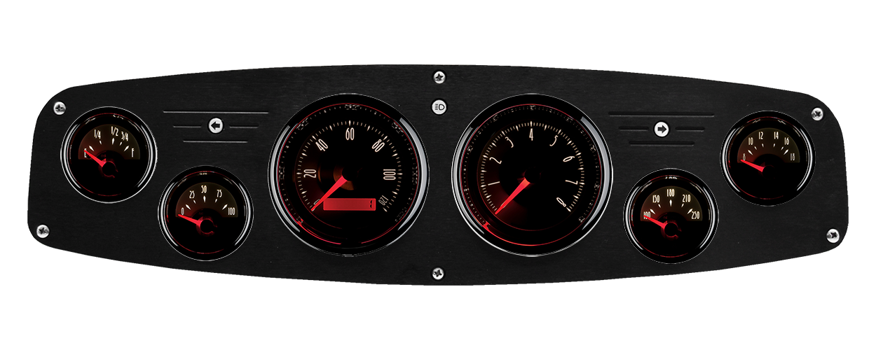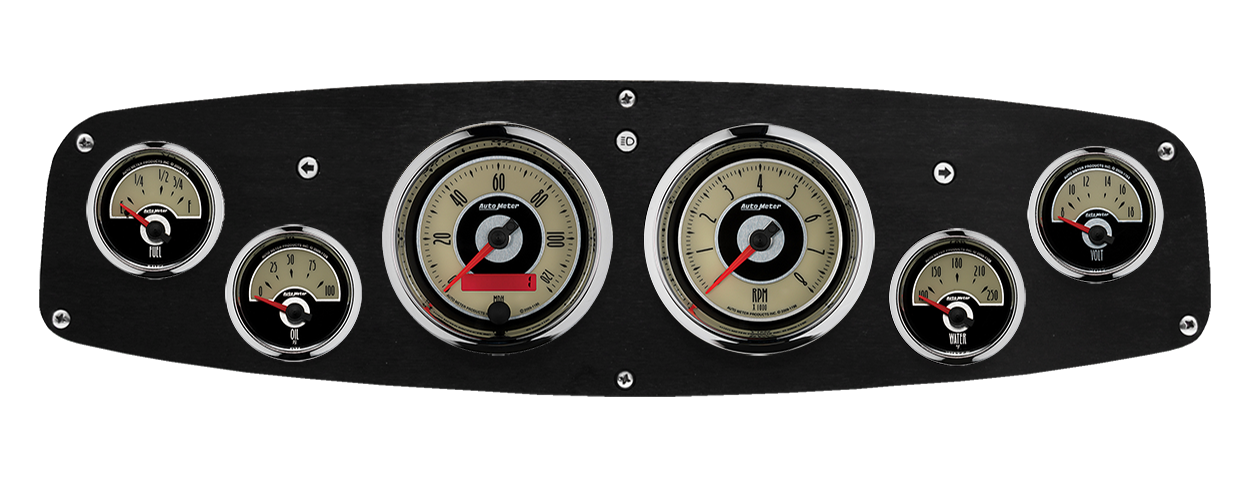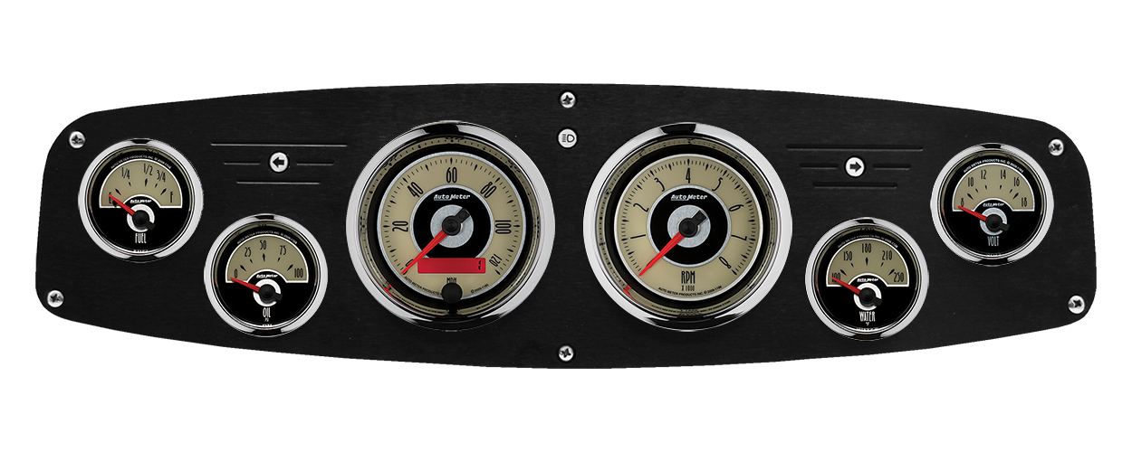 Includes aluminum gauge panel, Auto Meter Cruiser gauges, & LED lights (turn signal & high beam indicators).