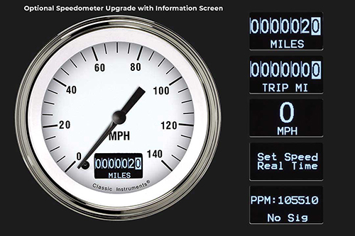 - 3 3/8? electric speedometer (140 MPH or 200 KPH)