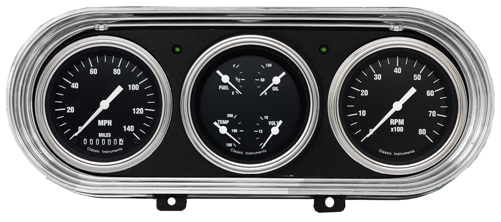 Includes aluminum dash insert, Classic Instruments gauges & LED lights (turn signal & high beam indicators).