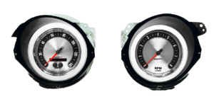 Includes aluminum gauge panels, Auto Meter American Muscle gauges, & LED lights (turn signal & high beam indicators).