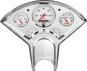 Includes polished aluminum clock insert & Auto Meter 2 1/16″ quartz clock.