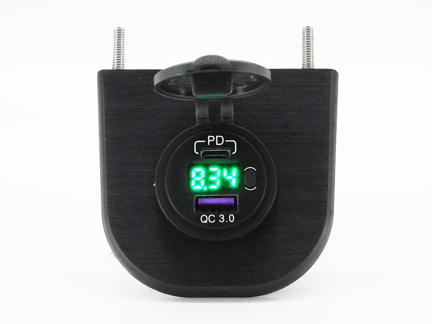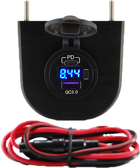 Aluminum water resistant 12v USB charging port.