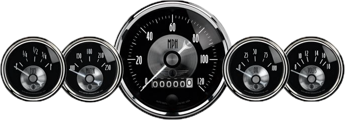 AutoMeter has brought together the most popular gauges into a simple kit. The kit includes a speedometer, water temperature, oil pressure, fuel level, and voltmeter. All senders included where applicable.